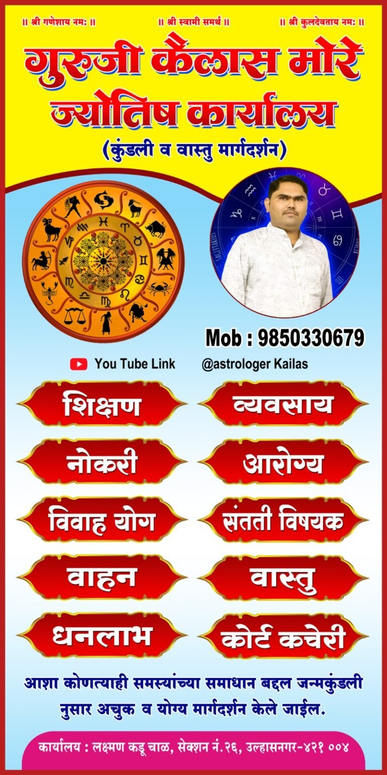 Meet Mr. Kailas More, a skilled Vedic Astrologer from India who is dedicated to helping people find stability and clarity in their lives. Guided by a deep desire to assist others, his readings combine traditional Vedic astrology with a heartfelt approach, always sticking to ethical practices. Mr. Kailas More, offers a range of services, including Marriage Consultation, Career and Business advice, Love and Relationship guidance, and Wealth and Property insights. He focuses on providing clear and practical solutions that are easy to follow, helping clients navigate their lives with confidence. With Mr. Kailas More, you’re not just getting predictions but gaining a compassionate guide who empowers you with spiritual knowledge and practical remedies. Let him help you bring balance and harmony into your life.